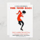 Mod dance party invitations featuring a 1960s stylized sketch of a fashionable mod dancing girl in black and red on a white background. Perfect for a dance party, celebration, or 60s vintage-themed event. Customize with your own event information.