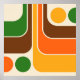 Retro Mid Century Modern Geometric Design in Green Yellow Orange & Brown.