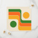 A dynamic abstract composition featuring two bold circles—one yellow, one green—linked by three flowing bands in green, orange and yellow. Each stripe is bordered by crisp lines, curving gracefully across a soft beige background. The interplay of shape and color evokes 1970s graphic design, balancing visual rhythm with sculptural simplicity. The result is a harmonious, retro-inspired piece that captures motion, contrast, and editorial clarity.
