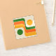 A dynamic abstract composition featuring two bold circles—one yellow, one green—linked by three flowing bands in green, orange and yellow. Each stripe is bordered by crisp lines, curving gracefully across a soft beige background. The interplay of shape and color evokes 1970s graphic design, balancing visual rhythm with sculptural simplicity. The result is a harmonious, retro-inspired piece that captures motion, contrast, and editorial clarity.