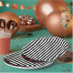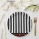 Entertain in style with these beautiful plates. This mod design has vertical black & white stripes with a splash of red detail and a cute red heart.