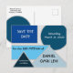 A save the date postcard to coordinate with the Mod Blue Shapes collection.