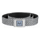 This lively contemporary pattern of blue grey squares outlined in black and set in a grid of heavy black lines is very modern in style yet classic, and the variety of scale creates movement within the design. Customize the background color for a unique look. This belt features the pattern rotated 90 degrees and a personalized monogram on the buckle.