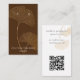 Modern earring display card features gold gingko leaf illustration on dark brown background with white contemporary text on front, and gray text with customizable QR code for your website or social media on back.