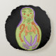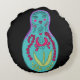 Add some contemporary whimsicality to your decor with one (or two!) of these lovely russian matryoshka doll throw pillows. One side features a lovely, floral matryoshka doll in green, with orange and purple accents. While the other side has the same lovely doll, but in a shade of blue... so you can change up your look with just the flip of a pillow!