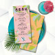 Pink Palm leaves Menu. Features Mid-century modern shaped sign, dinner plate, and tropical cocktails, palm leaves and fun fonts with a mod retro vibe. Funky colors of pink, green, orange, yellow and soft blue. All wording can be changed excetp for "menu" but you can delete it. To make more changes go to Personalize this template. On the bottom you’ll see “Want to customize this design even further? Click on the EDIT using Design tool. It will take some learning but you can change some of the fonts & some colors, move things around or delete what you need. You'll get the hang of it.