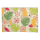 Warm colorway. Shades of natural and tans make up the background of this print with accents of palm green, pear green, goldenrod, living coral and hibiscus red. It is time for summer… all year round. Our modern abstract tropical print features monstera leaves and other organic shapes. This retro print is great for tropical decor, dorm rooms, patios, beach houses and more. This design comes in several colorways. The duvet and pillow shams reverse to a coordinating beach stripe.