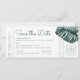 Mod Monstera Leaf Boarding Pass Save the Date Announcement