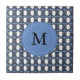 Mod Retro Monogram Blue Abstract Scarab Pattern Ceramic Tile