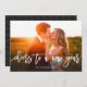 Celebrate the new year with a custom photo card featuring a fun modern script font overlay to showcase your photo and a pattern on the back!