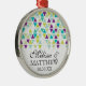 COLOR PALETTE: purple, aqua, ocean, teal, turquoise blue with sage, mint and lime green on a white background. DESIGN COLLECTION: This is a matching Wedding Ornament to match the wedding invitation set of the same name. This modern geometrical pattern design has a cascade of triangles of various hues and colors along with a banner heading and a subtle white and grey ghost of the the triangles running down the page. The text is set in a typographic, typography graphic art font layout. Simple, clean, crisp and elegant for the trendy, chic out of box, anything but ordinary couple. Your text is easily personalized using the easy template fields provided. Several color combinations are available, contact us if there is a color palette you would like us to create for you.