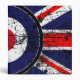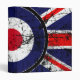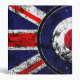 A vibrant Union Jack flag roundel design graphic print in grunge style. Good for a patriotic occasion, sports, or for a gift with a retro ska mod look to it.