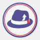 A stylized trilby hat in Union Jack's red, white and blue, bearing an arrow. A retro pop symbol for mods of all ages.