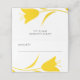 A modern stylized yellow tulip rests at the bottom of this table place card.