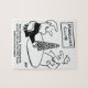 Model maker jigsaw. Man at a modeling club has built a model of the Eiffel Tower out of sausages. Surreal cartoon by UK cartoonist Nigel Sutherland. Fun jigsaw puzzle.