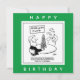 Model maker birthday card. Man at a modelling club has built a model of the Eiffel Tower out of sausages. Surreal cartoon by UK cartoonist Nigel Sutherland.