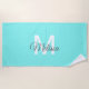 moder chic minimalist monogram turquoise aqua blue beach towel