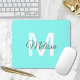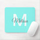 moder chic minimalist monogram turquoise aqua blue mouse pad