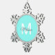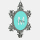 moder chic minimalist monogram turquoise aqua blue snowflake pewter christmas ornament