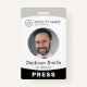 Modern personalized photo id badges for employees, highlights the color of job title, customize the employee name and photo, also the company logo and name. On the back, you can edit more information like company name, address and phone number, also add or remove barcode as you wish.