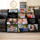 Black photo collage fleece blanket to display and enjoy 10 of your favorite pictures of family, friends, grandchildren, pets, memories, etc. Add two sections of your custom text in modern white typography.