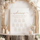 Modern light cream wedding seating chart foam board sign for up to 10 tables featuring "welcome" showcased in a chic gold script with swashes, "Find Your Seat," your names and wedding date in elegant gold serif typography, and the table numbers and guest names in simple gold lettering.