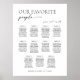Modern Script Wedding Seating Plan. Our Favorite People sign. Personalized Simple Minimalist Seating Chart for 110 guests (11 tables). Just click the customize further link, shown under the text personalization area on the right, and choose your custom color background. This sign poster template makes it fast and easy to create stunning additions to your wedding decor. Signs can be enlarged, there are many sizes to choose from, as well as options for custom framing and matting.