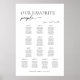 Modern Script Wedding Seating Plan. Our Favorite People sign. Personalized Simple Minimalist Seating Chart for 130 guests (13 tables). Just click the customize further link, shown under the text personalization area on the right, and choose your custom color background. This sign poster template makes it fast and easy to create stunning additions to your wedding decor. Signs can be enlarged, there are many sizes to choose from, as well as options for custom framing and matting.