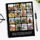 Create your own photo notebook featuring 16 of your pictures in a modern grid collage alongside your favorite inspirational quote or personalized text in simple typography.