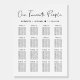 Simple and modern wedding seating chart sign for up to 16 tables featuring "Our Favorite People" in a chic script and your names and wedding date joined together by a heart.