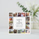 A very special but modern wedding Save the Date card to send to family and friends announcing the date of your wedding! The front of the design features 16 square photographs of your choice with your names and date of wedding. On the reverse is a one large photograph and an overlay with the the text 'Future Mr & Mrs ADD NAME and the date'.