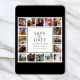 A very special but modern wedding Save the Date card to send to family and friends announcing the date of your wedding! The front of the design features 16 square photographs of your choice with your names and date of wedding. On the reverse is a one large photograph and an overlay with the the text 'Future Mr & Mrs ADD NAME and the date'.