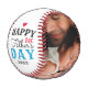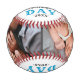 The perfect gift to give for new dads is this personalized photo baseball. This design template includes two of your photos for the front and back of the ball. Accompanying it is text that reads "Happy 1st Father's Day" in red, black and turquoise to personalize with the year and baby's name on a white background. To all the dads, Happy Father's Day! Designed by artist ©Susan Coffey.