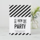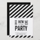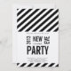 Modern 2013 New Years Eve Party Invitation Flat Card with black text, black and white stripes background, on a silver grey metallic paper style. Add your New Years Eve party information and paper option. Shown on metallic silver paper. Design by Elke Clarke ©.