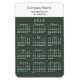 Add your company name and contact info or slogan in green on a white color block on top of a modern white 2025 calendar on a forest green background. Customize the text in the sidebar with your business name, website, phone number, address, or motto. Makes a great promotional giveaway for your customers.