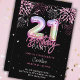 Modern 21st Pink Foil Balloon Fireworks Birthday Invitation
