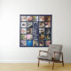 Family photos tapestry with spaces for 22 photos as well as your family's name in the center. The background is a dark navy blue.
