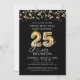 Modern 25 Year Class Reunion Black Gold Streamers Invitation