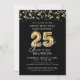 Modern 25 Year Class Reunion Black Gold Streamers Invitation