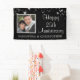 Celebrate the couple and/or welcome party guests with this black and silver themed banner sign with silver stars and script HAPPY 25th ANNIVERSARY (ideal for ANY YEAR anniversary as the text is all changeable). The design allows you to personalize it with their photo, names and the number of their anniversary. PHOTO TIP: For fastest/best results, choose a photo with the subject in the middle and/or pre-crop it to a square shape BEFORE uploading. Contact the designer via Zazzle Chat or makeitaboutyoustore@gmail.com if you'd like this design modified or on another product. or would like coordinating items for your party and gifts.