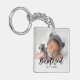 Modern elegant 2 photo Baptized personalized key chain. Add a date and a name.