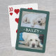 Share favorite pictures on game night with elegant custom 2 photo playing cards. This template is set up with a pet's name, but is easy to personalize with a family or friend's name, a wedding couple's monogrammed initials, or any wording of your choice. The colors and font style can also be customized using the Zazzle design tool. Create your own unique keepsake gift for any occasion. The modern green and white design features two of your favorite pictures and minimal classic typography. There's no better gift than the simple joys of cherished memories.