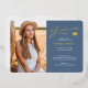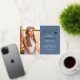 This double sided 2 photo stylish graduation announcement or thank you card with real gold foil, features modern text fused with elegant calligraphy script in gold foil and white on dusty blue. Photos are one on the front and one on the back, perfect for framing. The background can be easily customized to a color of your choice. To see more items like this, visit my store here at "www.Zazzle.com/LakeViewCardCo". Thanks