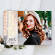 On the front, there's a full-bleed portrait with a fashionable modern GRAD real foil typography standing over a vertical sheer white overlay band, as well as the graduate's name and class year. The reverse of the card may be customized with a second photo, the names of the graduate's parents, and information about the graduation ceremony.