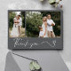 Say thank you in style with this Modern 2 Photo Wedding Thank You Card. Designed with simplicity and elegance, the front features two of your favorite wedding photos paired with a chic script "thank you" for a heartfelt yet modern touch. The back offers space for your custom wedding message, making it the perfect way to share your gratitude while giving your loved ones a keepsake of your special day.
