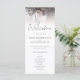 Modern 2 Photos Overlay Script Wedding Program. Available digitally and printed. Minimalist elegance with your photo to the top edge behind a graduated tint layer with the text partially overlaid on top of your image at the bottom. Choose a different photo for the other side. The main header Welcome is in a stylish set script and the rest of the text you can easily personalise.
