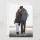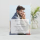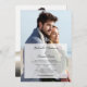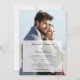 This simple wedding invitation features 2 full bleed vertical photos, one on the front and another on the back. The text appears in a white transparent box on the front over top of the photo. The backside offers custom text for RSVP information.