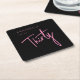 Custom 30th birthday paper coasters with pink script text on black background, perfect for thirtieth birthday party celebrations. Customize with your own name. Colors can be edited in the design tool. Please use the message me button below for help with further customization and special requests. © Zoe Chapman Design