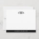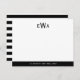 Modern 3 Initial Monogram Black White Stripes Note Card