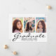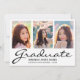 Modern 3 Photo Collage Black Script Graduation Announcement